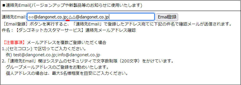 例:○○@dangonet.co.jp;△△@dangonet.co.jp