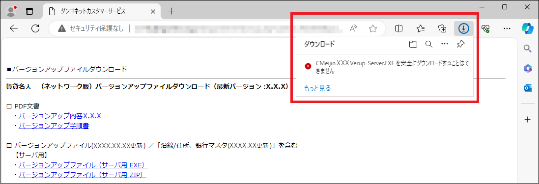 弊社FAQ「バージョンアップを試みると、ファイルブロックされます。[Edge]」