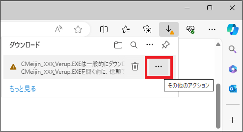 ④以下のメッセージは、カーソルを合わせて右側に表示する「その他のアクション」をクリックします。