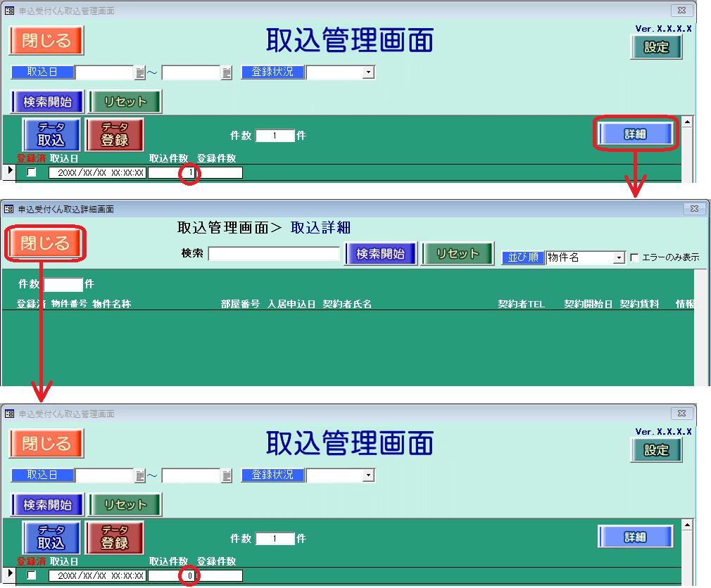 ③再度、取込管理画面の[データ取込]ボタンを実行します。