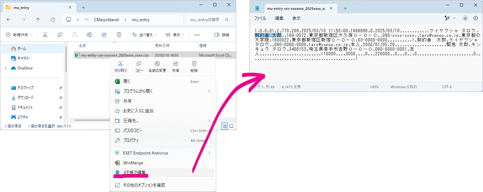 お持ちでない場合、または文字化けして解読できない場合は、メモ帳で内容を確認します。