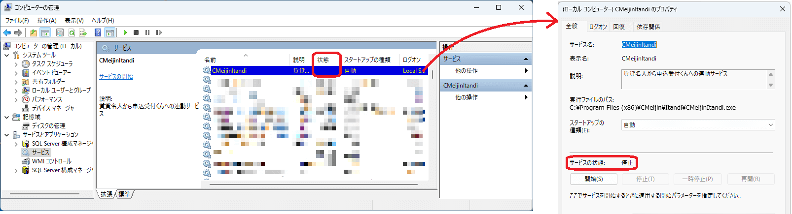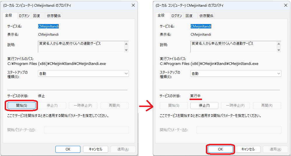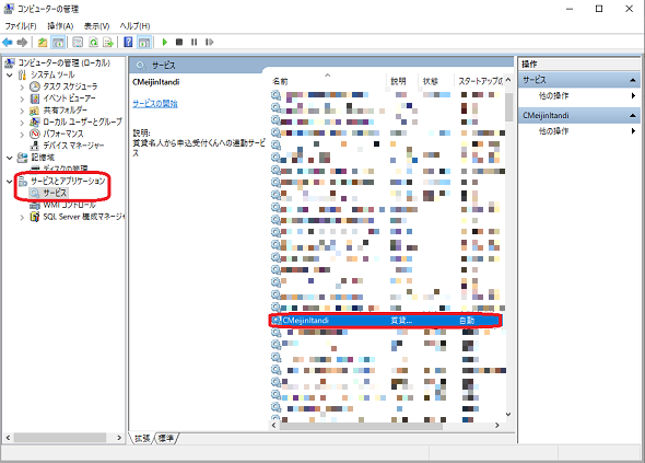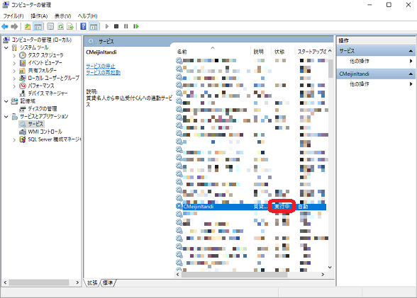 ④「CmeijinItandi」の状態が「実行中」になった事をご確認ください。