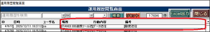 データ送信が成功した場合に限り、下記の通り、記録が残ります。
