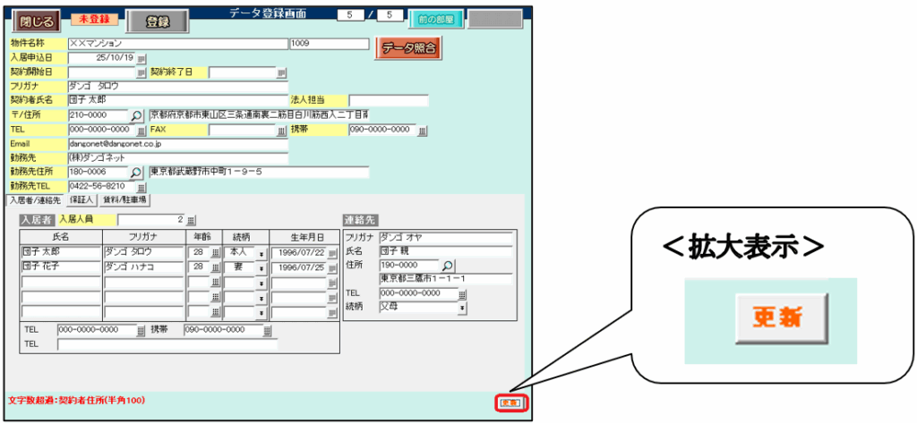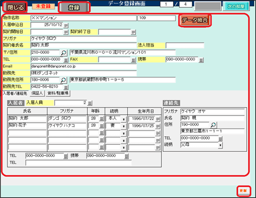 表示中の契約者データを賃貸名人に登録する際に利用します。