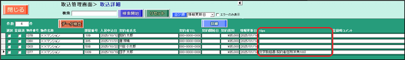 3-2.取込管理画面>取込詳細の「登録時コメント」欄