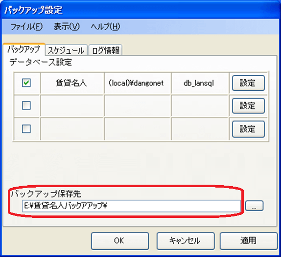 バックアップ設定画面の「バックアップ保存先」で指定したフォルダ内を参照します。