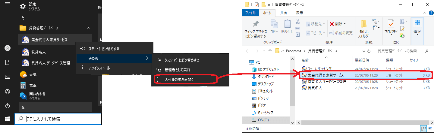 標準:C:\ProgramData\Microsoft\Windows\Start Menu\Programs\賃貸管理データベース