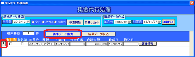 1.目的のレコードを選択し、[請求データ出力]ボタンを実行します。