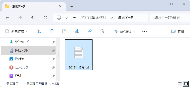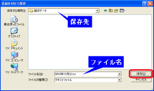 (例)保存先:[~マイ ドキュメント]→[アプラス集金代行]→[請求データ]