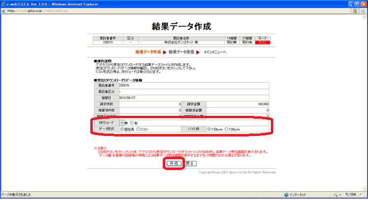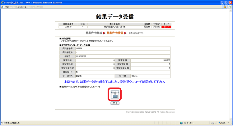 引落が完了し、定まった営業日が経過すると、結果データをダウンロードすることができます。