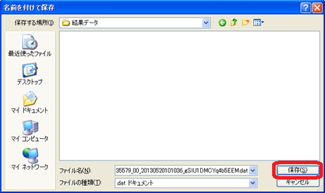 任意の保存場所とファイル名を入力し、[保存(S)]ボタンを実行します。