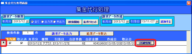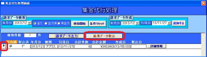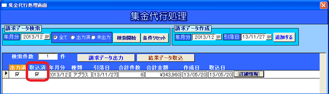 2013年12月引落しですが、結果データの取込時には年が明け既に2014年になっています。