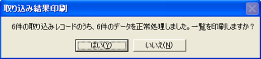 取り込み結果一覧表を印刷する場合は[はい(Y)]、印刷をしない場合は[いいえ(N)]を選択します。