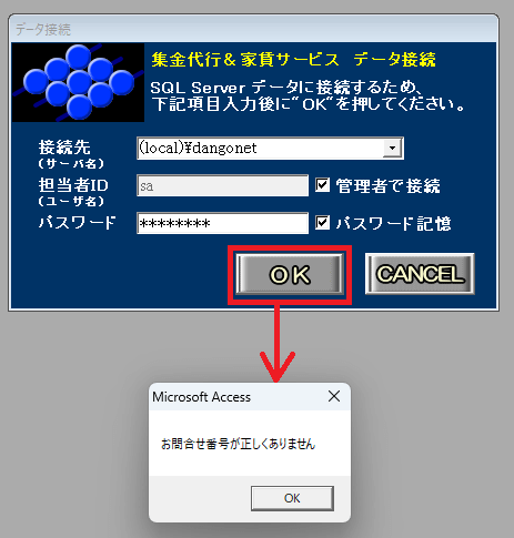 そのため、賃貸名人6.2以上のバージョンアップファイルを適用後は、アプラス用のアプリ「集金代行&家賃サービス」を起動するとエラーメッセージが表示され、起動ができません。