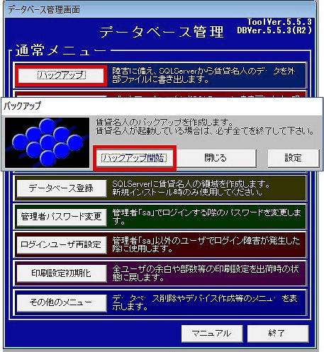 マスター管理の「ファイル保存設定パス」で指定したフォルダを、別途バックアップします。