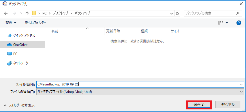 (3)保存先のフォルダを指定して、[保存(S)]ボタンを押します。