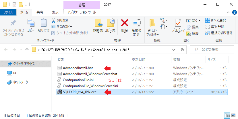 例:「F:\CM 5.7.x\SetupFiles\sql\2017」