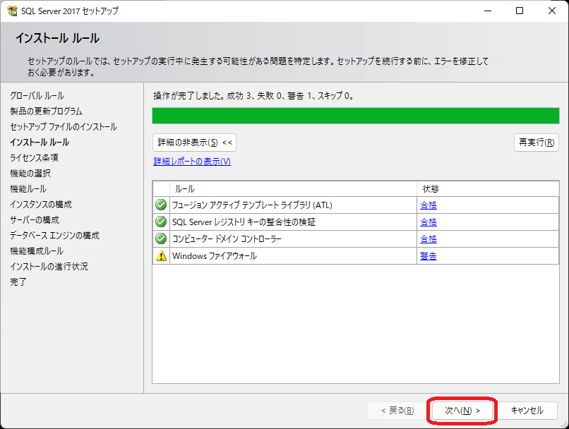 (5)「インストールルール」の[次へ(N)>]をクリックします。