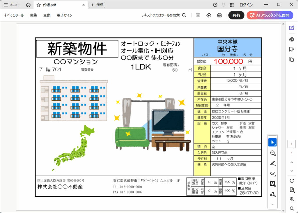 「物件台帳」は、カラー印刷で出力する事が可能です。