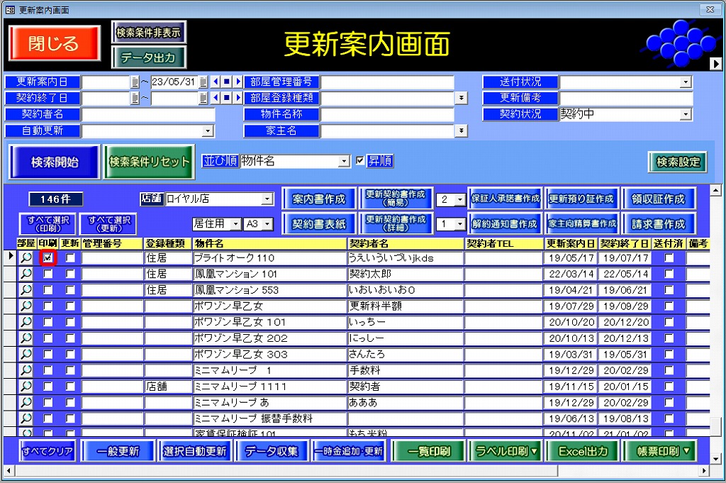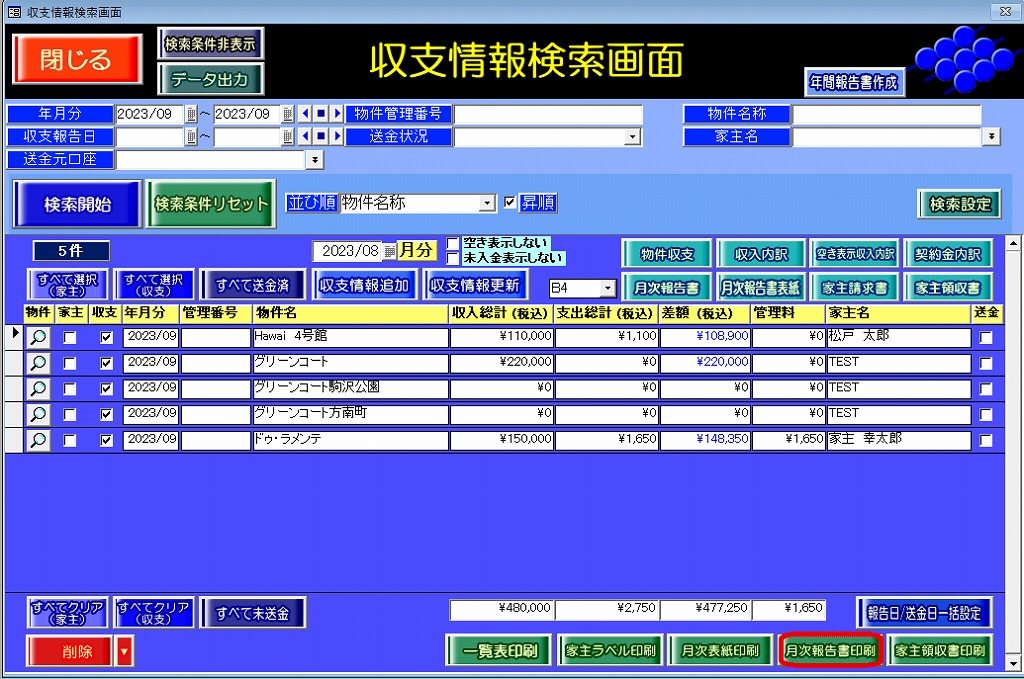 ・「[賃貸名人]月次報告書を一括で印刷する」