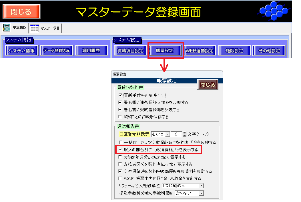 2.「うち消費税」欄の表示/非表示を制御する[対象:賃貸名人5.6(v1)以上]