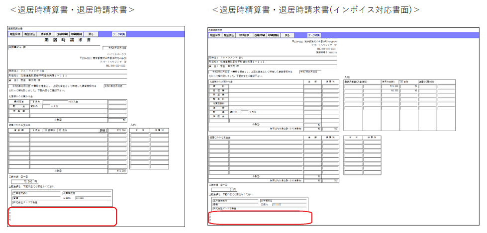 ※ 退居時精算書 と 退居時精算書(インボイス対応書面)