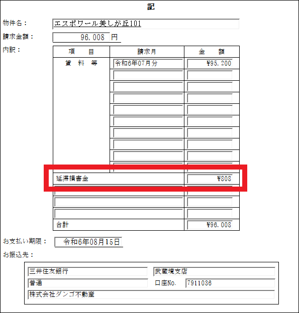 賃貸借契約書の標準帳票の約款記載に合わせ、閏年でも計算式を固定して延滞損害金を算出します。