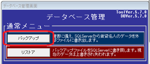 データベース管理を起動し、[バックアップ]ボタンを実行してください。