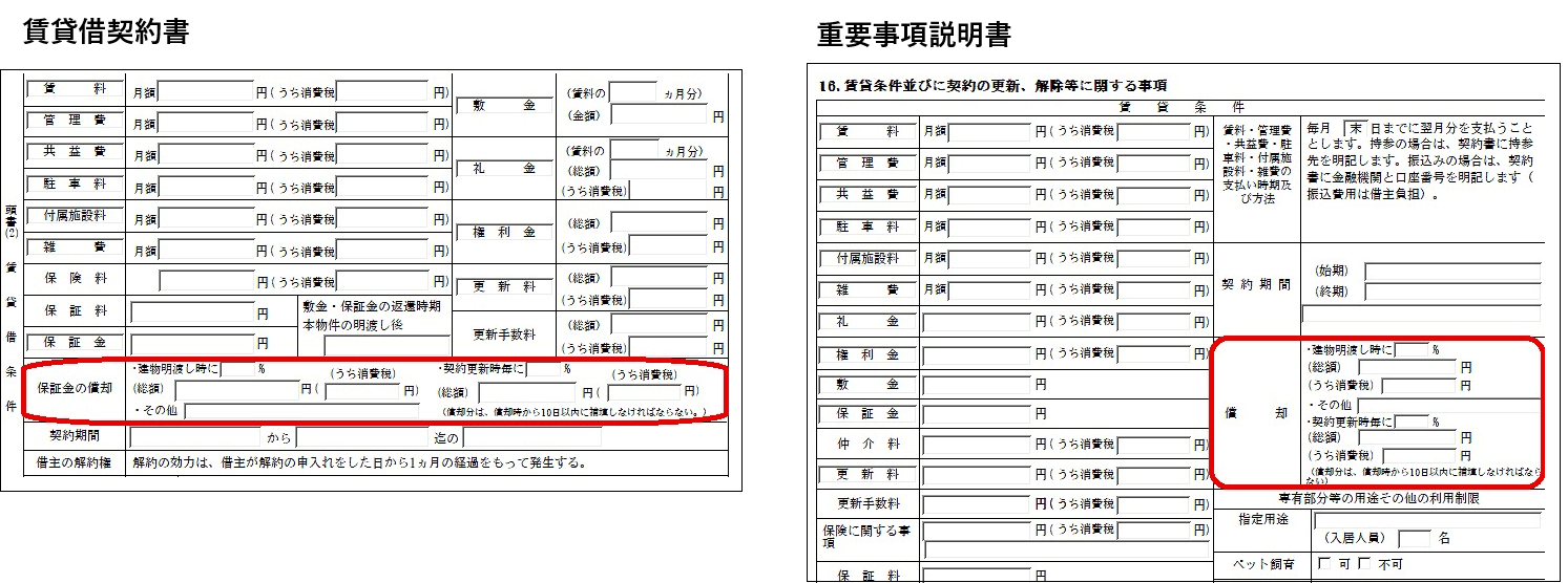 ・重要事項説明書の「償却」に反映させるにはどうすればいいですか?