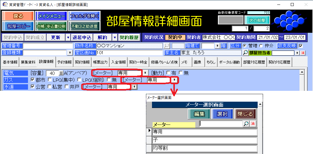 住戸専用のメーターで、供給事業者が検針・請求をし、契約者が料金を支払います。