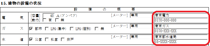 重要事項説明書にライフライン供給会社を記載するには?