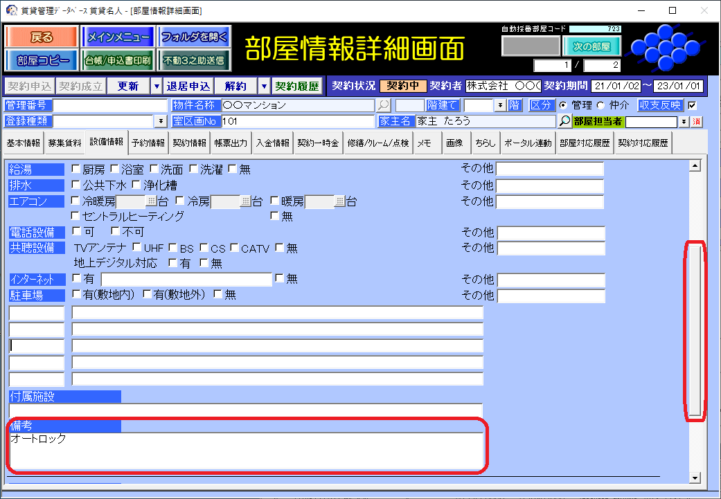 部屋情報詳細画面の[設備情報]タブの「備考」欄が反映元です。