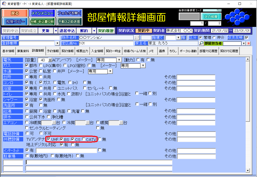 ・部屋情報詳細画面の[設備情報]タブは、どのようにしたらいいですか?
