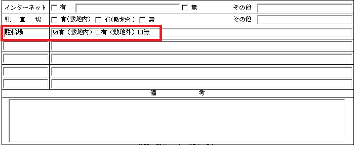 例えば、「駐車場」を「駐輪場」に変更したい等、賃貸名人上のラベル名を変更することができません。こちらのフリー項目欄をご活用ください。