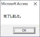 (3)以下のメッセージ「完了しました。」が表示されたら、[OK]をクリックします。