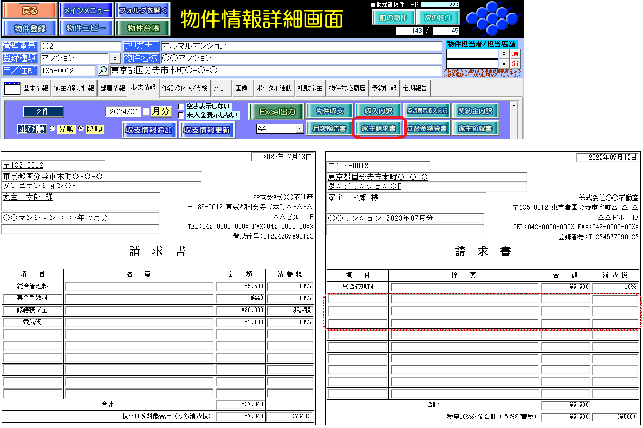 回答・対処方法 家主請求書は、自社の「インボイス番号」(適格請求書発行事業者登録番号)を印字し、家主へ総合管理料を請求することができます。