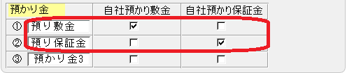 「預り金①~③」の[自社預かり保証金]チェック:OFF