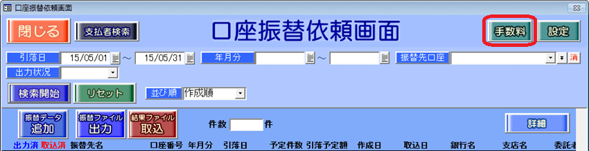回答・対処方法 本機能は、賃貸名人で契約者情報入力時に手数料を設定している場合は使用しません。賃貸名人のバージョンが非常に古く、各部屋で振替手数料の設定ができない場合等にご利用いただきます。