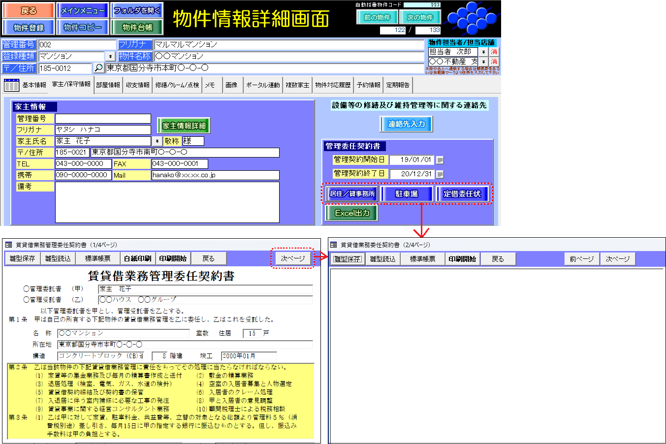 ・帳票タイトル「駐車場管理委任契約書」 ([駐車場]ボタン)