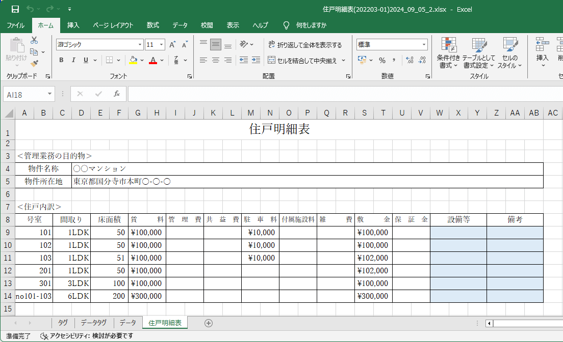 エクセルファイルは、「ダンゴネット カスタマサービス」からダウンロードすることができます。これらの帳票は、公益財団法人日本賃貸住宅管理協会の書式をベースに賃貸名人上の賃料項目名(例:賃料、管理費…等)を用い、レイアウトを一部変更しております。そのため、日管協準拠書式ではなく、当社のオリジナル書面の扱いになります。ご了承ください。