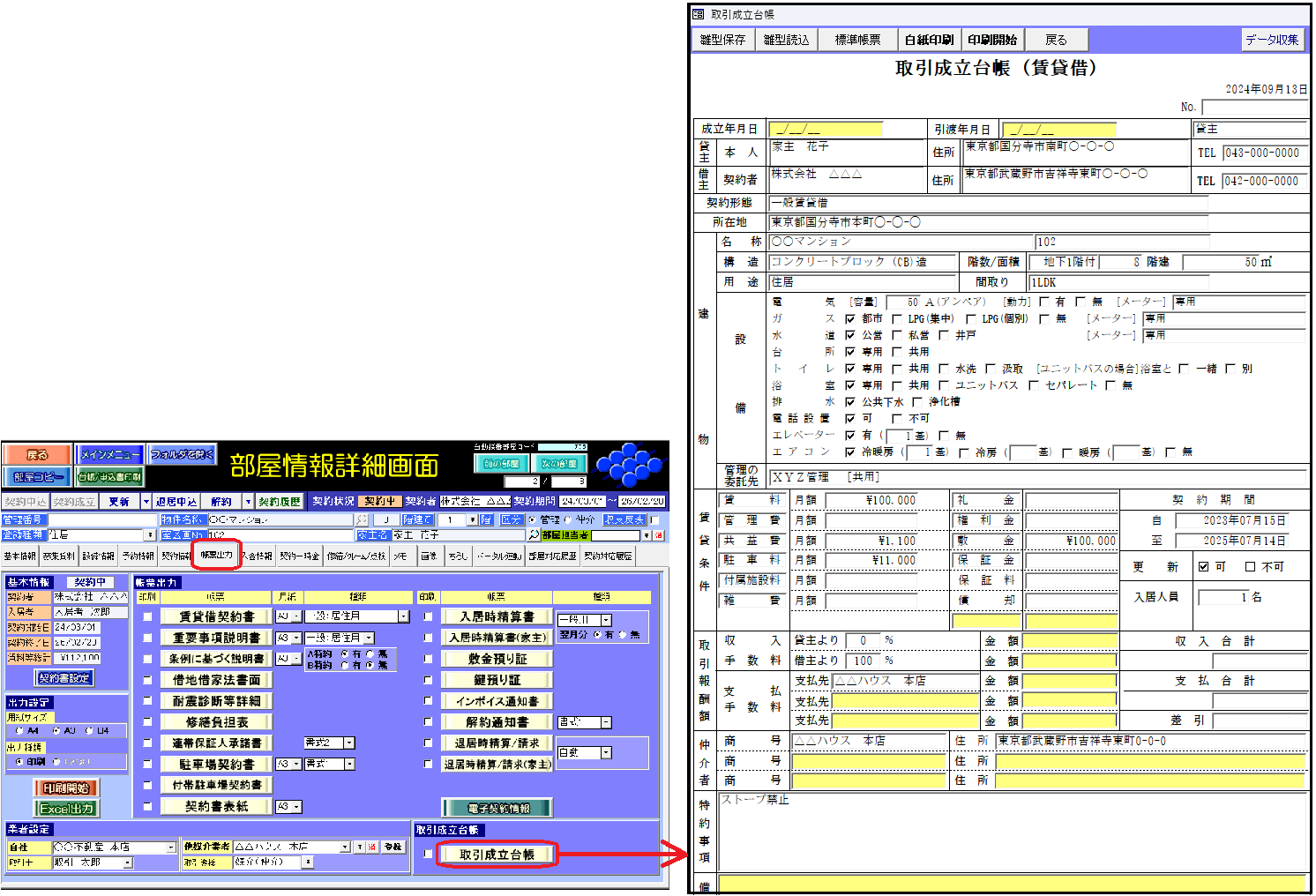 帳票タイトル:「取引成立台帳(賃貸借)」