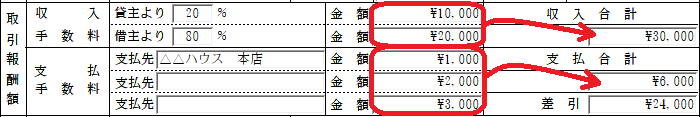 ・「取引報酬額」欄の「支払手数料」…「支払先」と「金額」(2~3行目)