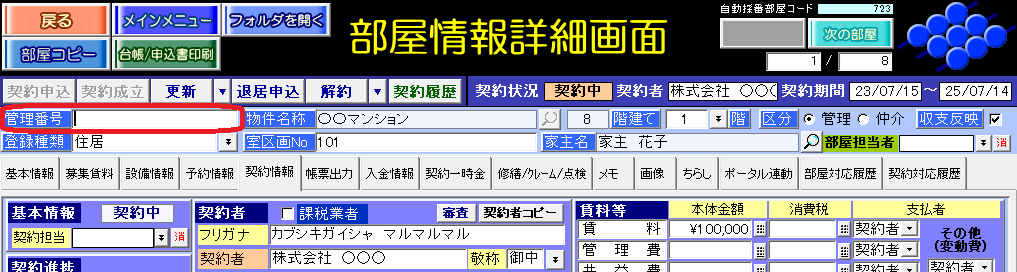 部屋情報詳細画面の「管理番号」を参照します。