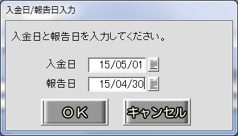 「入金日/報告日入力」ウインドウは、月次報告書の締め日に合わせて任意に日付をご変更します。