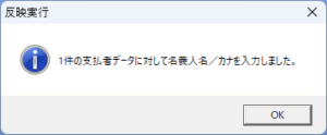 「〇件の支払者データに対して名義人名/カナを入力しました。」