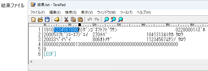 ①結果ファイルのヘッダーレコードの「委託者コード」をメモ帳で確認します。
