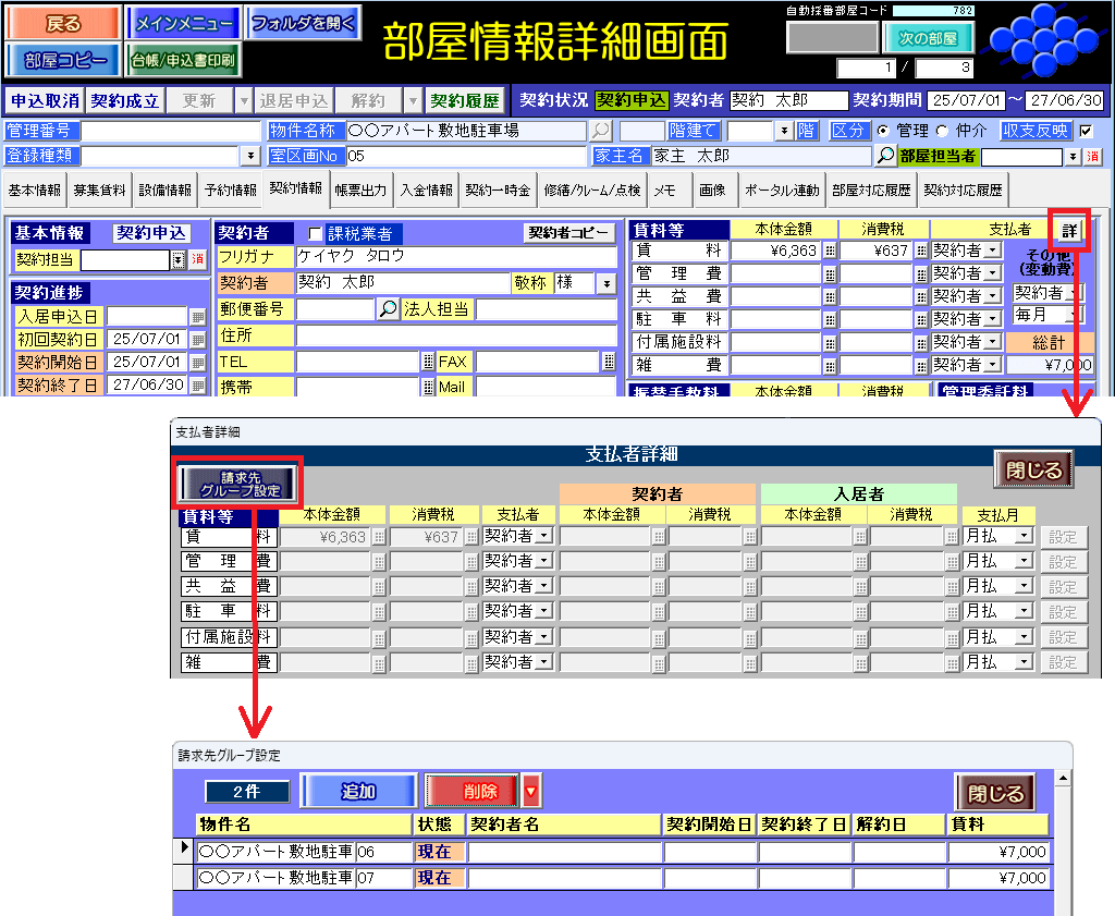 ※[請求先グループ設定利用時、駐車場契約書の複数台表記を利用する]の初期値は OFF です。