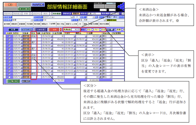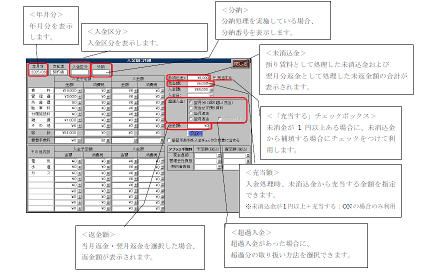 ※充当せず預り賃料、当月返金、翌月返金を選択時に利用可能。