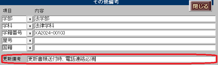 入力した内容は毎回の更新処理時の注記として表示されます。