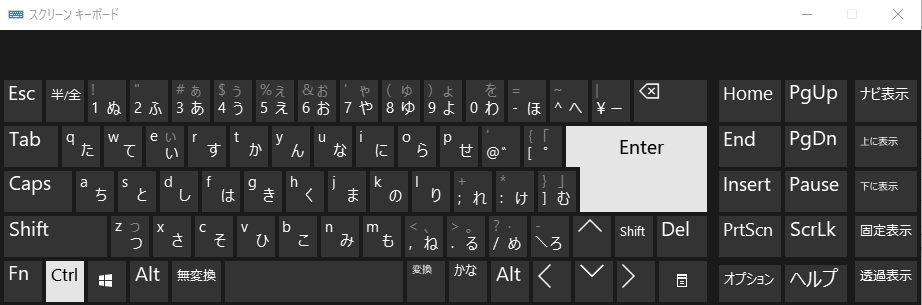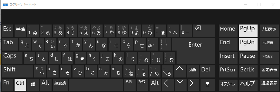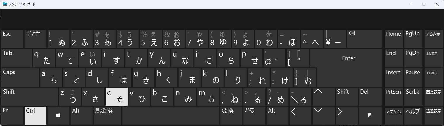 下記のキーボード画像(キャプチャ)は、Windowsのアプリ「スクリーンキーボード」を利用しています。ボタン表記や配置は、メーカーや機種によりまちまちです。ご利用されているキーボードで該当箇所をお探しください。